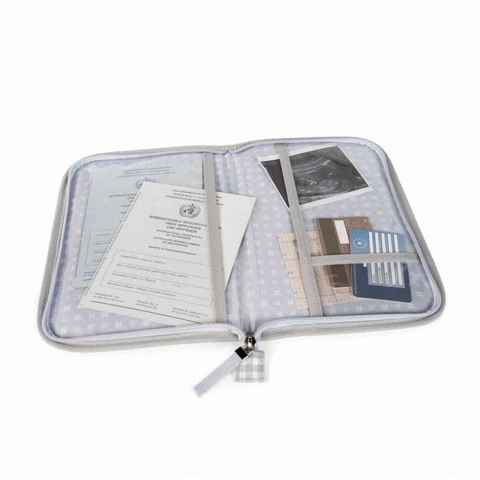 Um acessório imprescindível para levar consigo para todo o lado e que o ajudará a manter em ordem toda a documentação do seu bebé. Confecionado com materiais resistentes, possui vários bolsos interiores plásticos para melhor organização. O fecho de correr mantém os documentos seguros.